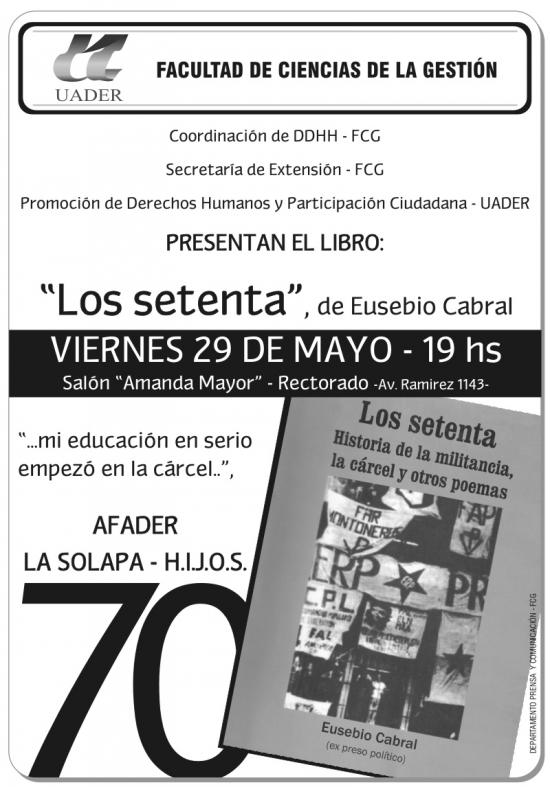 “Historia de un sobreviviente” de Eusebio Cabral, es una historia contada con el cuerpo; es una historia hecha de definiciones autocríticas y de proposiciones políticas; es un análisis y un esbozo de ensayo, que el autor dice profundizará en otros libros futuros.