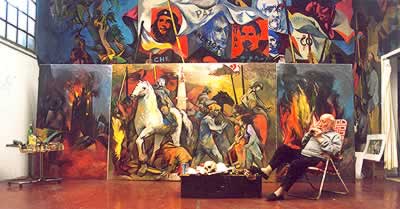 1984 – En Galería Fundart se exponen 43 obras tipo murales. Primer alegato de un artista argentino en contra de la represión de la dictadura militar, intitulada “proceso al proceso”