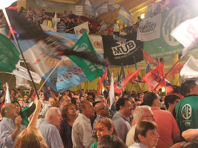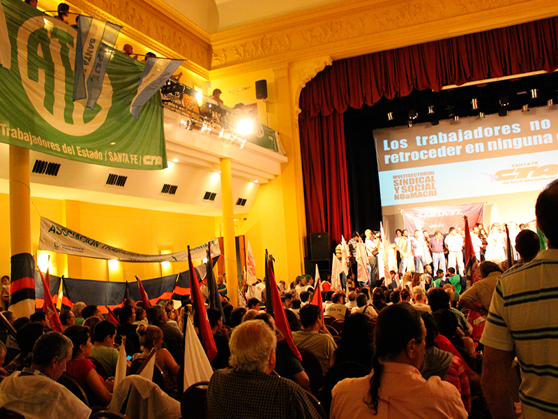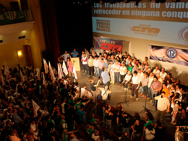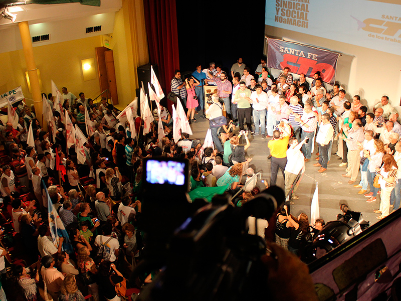 Con la participación de más de una treintena de organizaciones sociales y centenares de trabajadores, se realizó ayer en el Centro Cultural ATE Casa España de la ciudad de Santa Fe un masivo acto en donde se conformó de manera unánime la iniciativa de transmitir de acá al día del ballotage las consecuencias que traerían para los trabajadores las ideas de devaluación y ajuste que propone el candidato del PRO, Mauricio Macri.