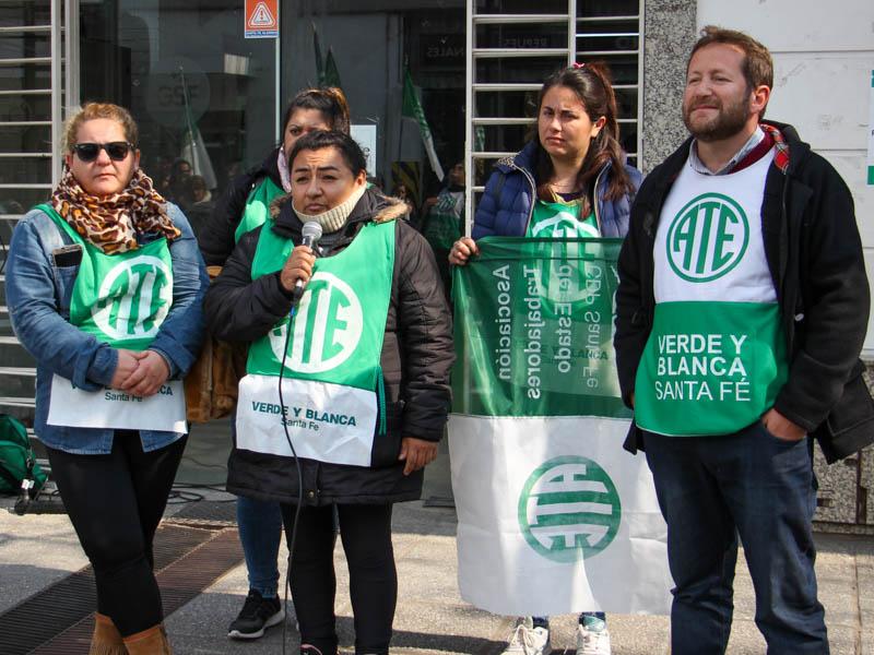 La Asociación Trabajadores del Estado -ATE- Santa Fe junto a compañeros de Rosario, Casilda, Venado Tuerto, Rafaela, Santa Fe y zona protagonizó una contundente protesta frente a la Subsecretaría de Niñez en la capital provincial.