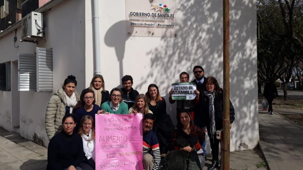 En la ciudad de Reconquista, también los trabajadores se hicieron sentir por la situación que atraviesan compañeros precarizados/as, quienes cumplen funciones en la Subsecretaría de Niñez y Orientación Social y manifestaron su preocupación por la inestabilidad de sus fuentes de trabajo.
