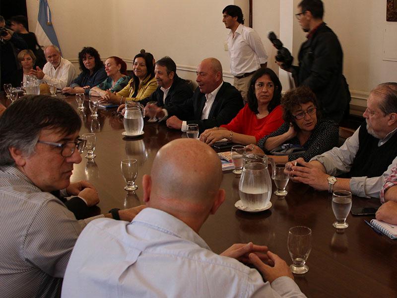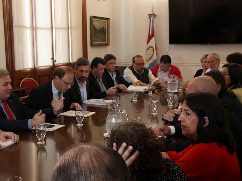 En ese marco, los referentes de todos los sindicatos participantes de paritarias fueron informados por los ministros Pablo Farías, de Gobierno, y Gonzalo Saglione, de Economía, de la situación actual de las finanzas públicas provinciales como así también de la evolución salarial.