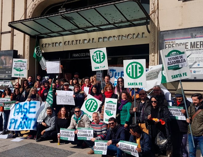 En la misma sintonía, cabe recordar que el martes pasado 3 de septiembre se concretó una concentración de trabajadores/as de la Cultura, en la ciudad de Santa Fe frente al Centro Cultural Provincial Francisco “Paco” Urondo, y en Rosario, frente a la Plataforma Lavarden.