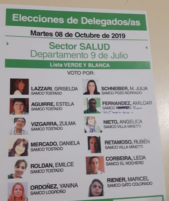 Elecciones de delegados del sector Salud en el Departamento 9 de Julio