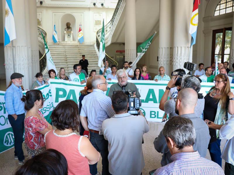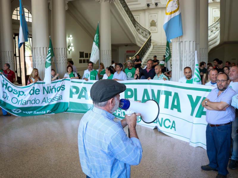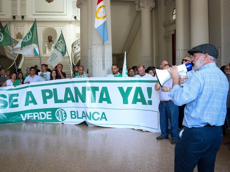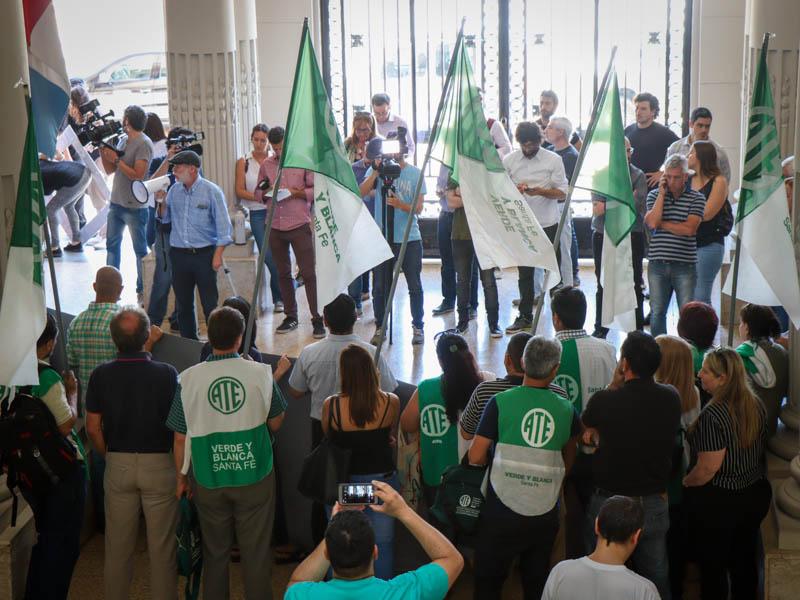En la continuidad de la lucha por el pase a planta de contratados/as, este lunes, la Asociación Trabajadores del Estado -ATE- Santa Fe en una conferencia realizada en el hall de Casa de Gobierno anunció una Jornada provincial de Protesta.