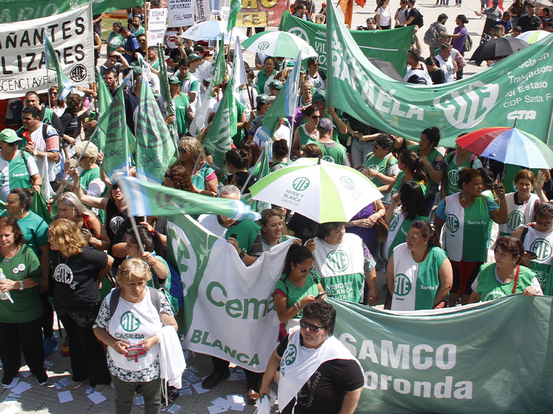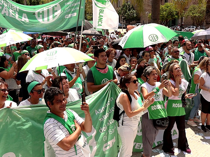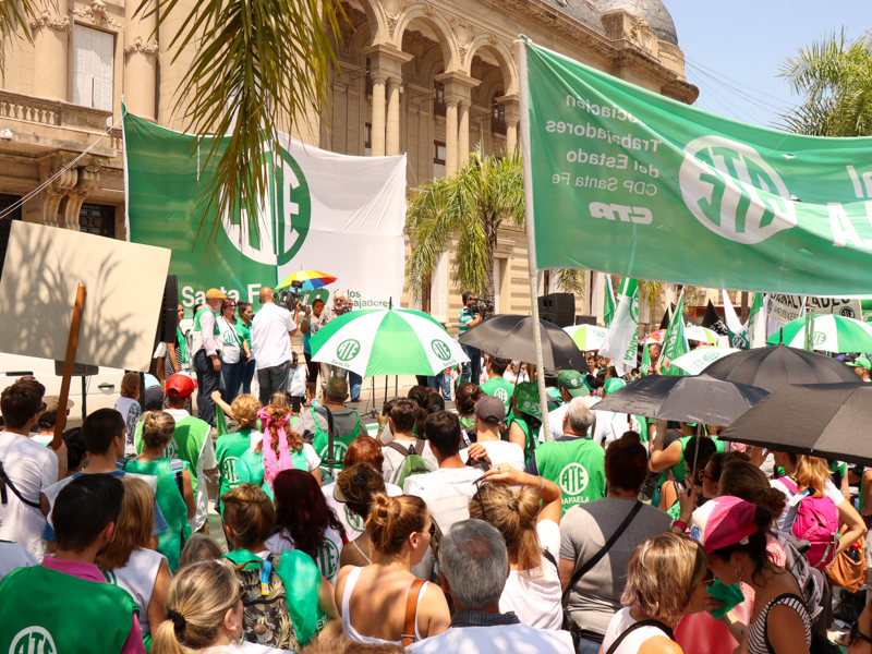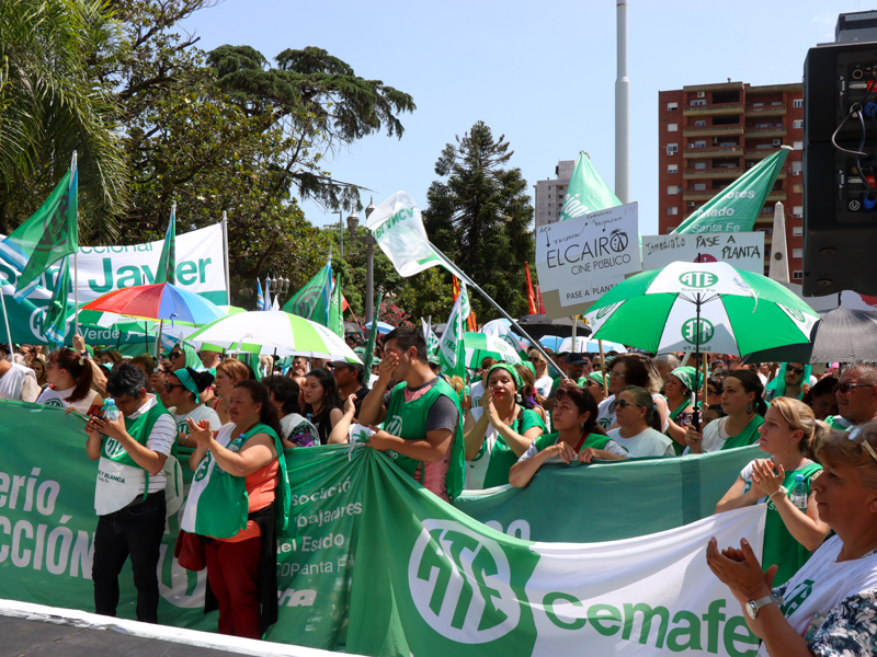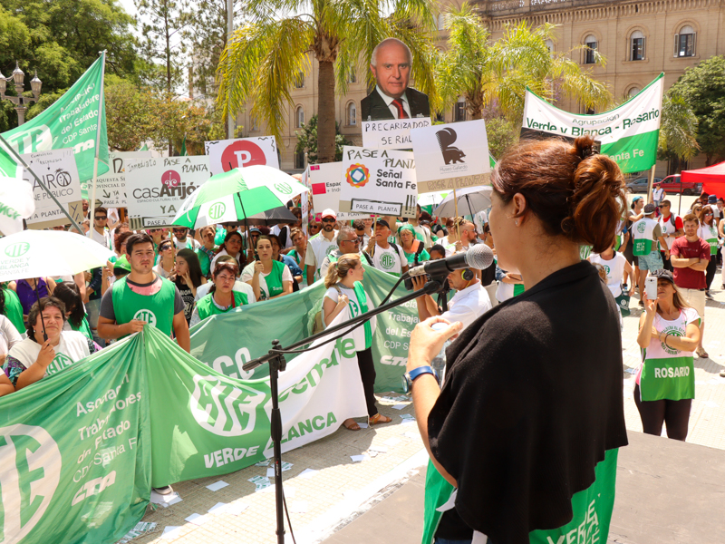Cientos de trabajadores/as comenzaban a concentrarse frente a la Casa de Gobierno para exigir el inmediato pase a planta permanente de contratados/as con diferentes situaciones y tipos contractuales en la provincia de Santa Fe.