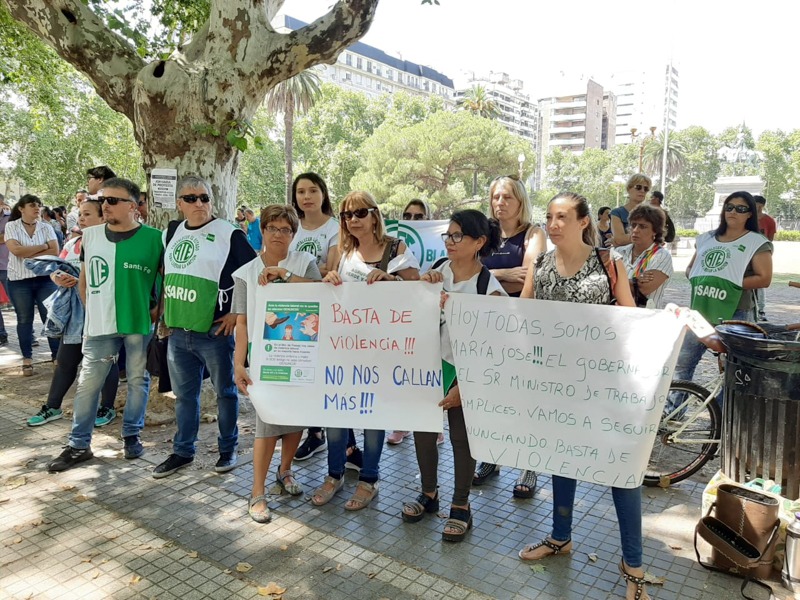 La denuncia fue realizada por Acoso Laboral y Violencia de Género. ATE realizó este lunes 9 una concentración frente a la sede de la gobernación en Rosario para exigir la inmediata reincorporación de la trabajadora.