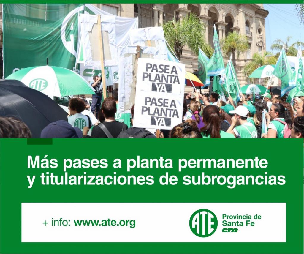 Así, se da así respuesta al persistente reclamo de ATE tanto de pases a planta como de titularización de trabajadores/as que se encontraban subrogando.