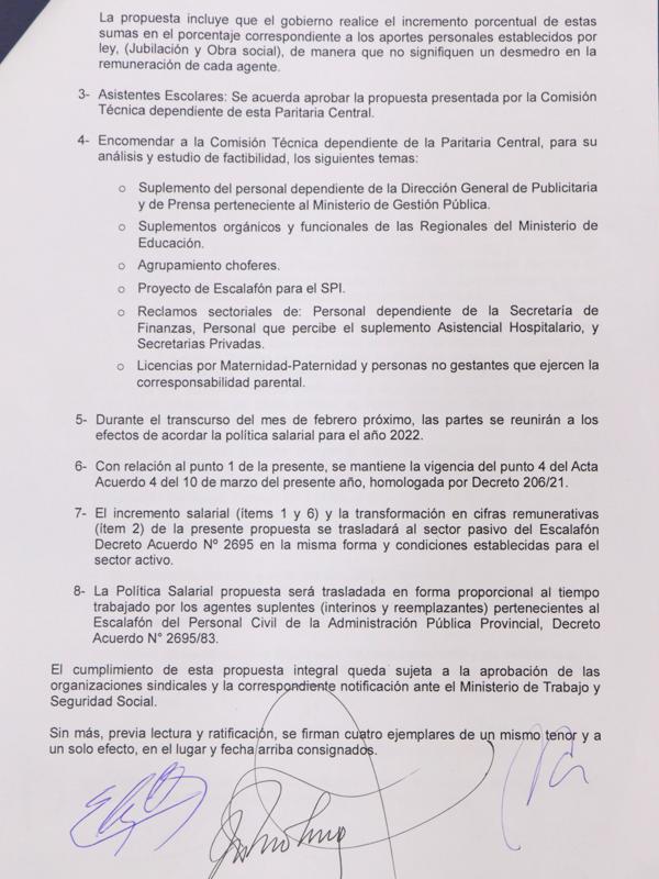 - Convocatoria a Paritaria para acordar política salarial 2022 en el transcurso del mes de febrero próximo.