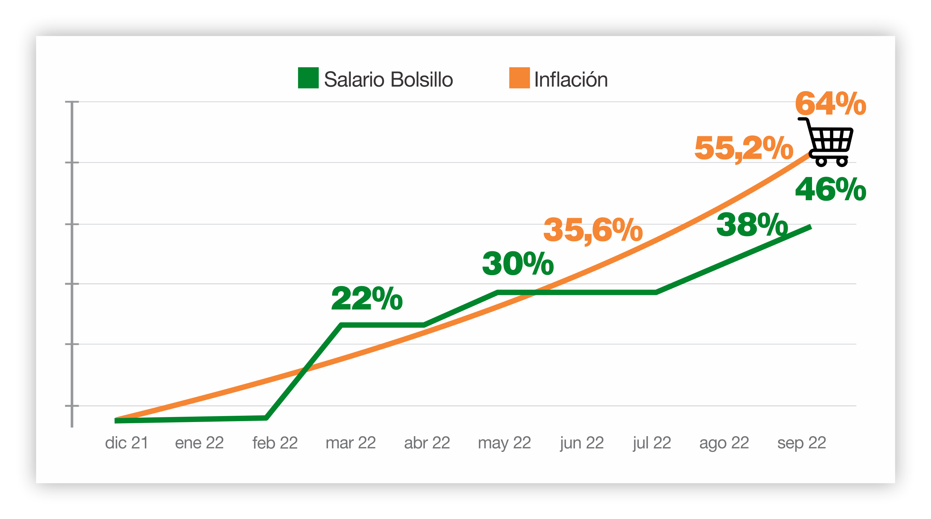 El acuerdo paritario del mes de marzo 2022, cuando nadie preveía la disparada inflacionaria, fue del 46% en cuatro tramos: 22% en marzo, 8% en mayo, 8% en agosto y 8% en septiembre.