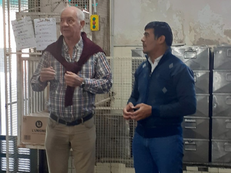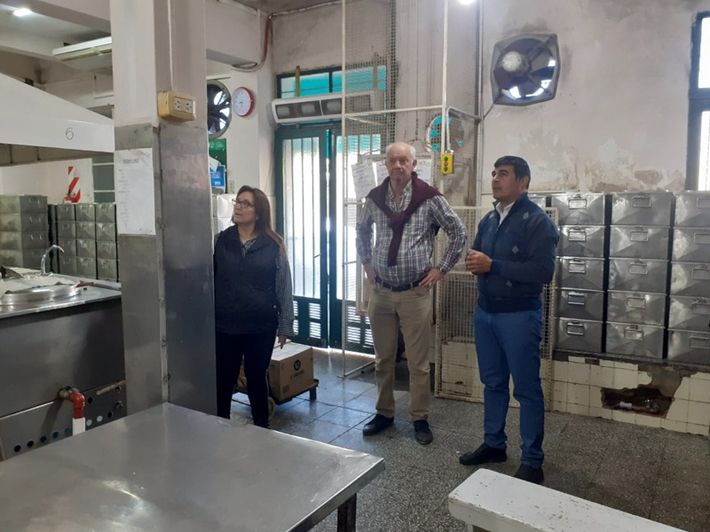 Junto al Director Regional Roberto Lorenzini, el Arquitecto Jorge Meglier y después de una evaluacion de daños, las autoridades clausuraron la cocina, entregando a cada escuela dieta seca hasta tanto se reorganice el servicio.