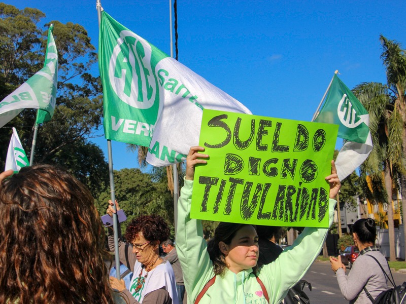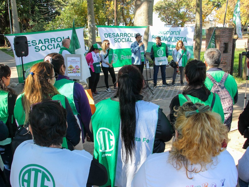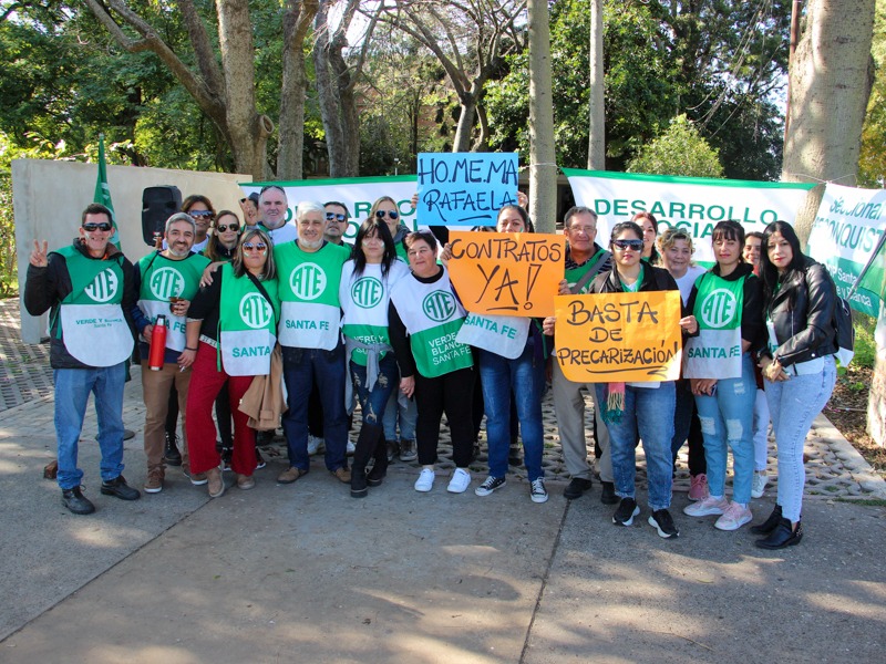 Con la presencia de alrededor 500 de trabajadores/as de las ciudades de Reconquista, Rosario, Rafaela, Laguna Paiva, Rincón, Coronda y Santa Fe se movilizaron exigiendo al Ejecutivo la firma de los contratos art. 169 como así tambien la correciones necesarias para los Pases a Planta Permanente.