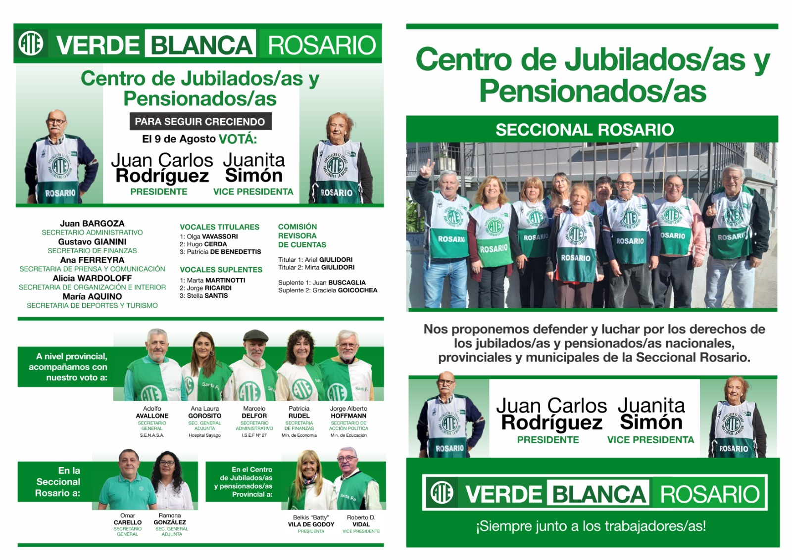 Más sindicato. Más Derechos. Más transparencia. Otra Seccional es posible, el 9 de agosto votá a la VERDE y BLANCA. Las elecciones se realizarán de 8 a 20 horas en la Seccional Rosario en San Lorenzo 1879. Conocé los candidatos/as y Nuestras Propuestas.