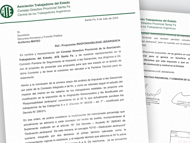 El CDP de ATE y sus representantes en la Comisión Paritaria de Seguimiento al Impuesto a las Ganancias presentaron esta propuesta para que sea tratada en el ámbito de la Comisión y de tener el consenso sea elevada a la Paritaria Técnica para su tratamiento.