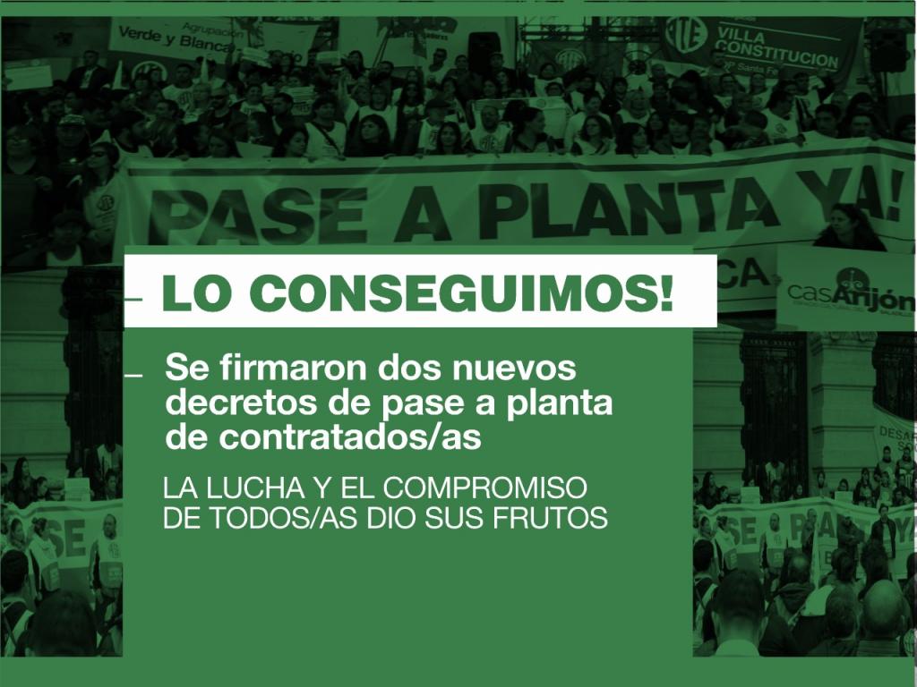 ATE felicita a los/as trabajadores/as que han logrado la estabilidad laboral y los derechos inherentes al personal efectivo de planta del Estado.