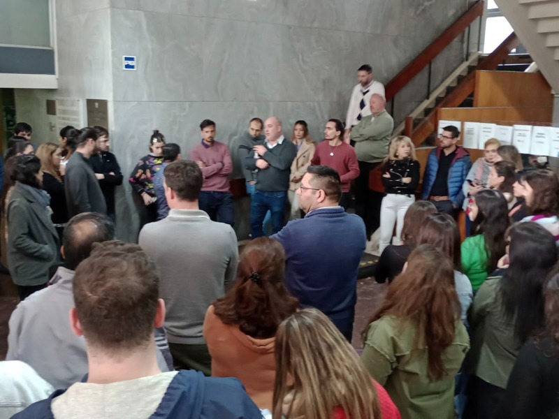 Este martes 22 de agosto se realizó una numerosa asamblea en el hall de ingreso al Centro Cívico de Santa Fe donde más de 100 trabajadores/as plantearon su preocupación por la demora en el trámite de pase a planta permanente de quienes se encuentran enmarcados en Programas Nacionales pertenecientes al Ministerio de Educación de la Provincia de Santa Fe.