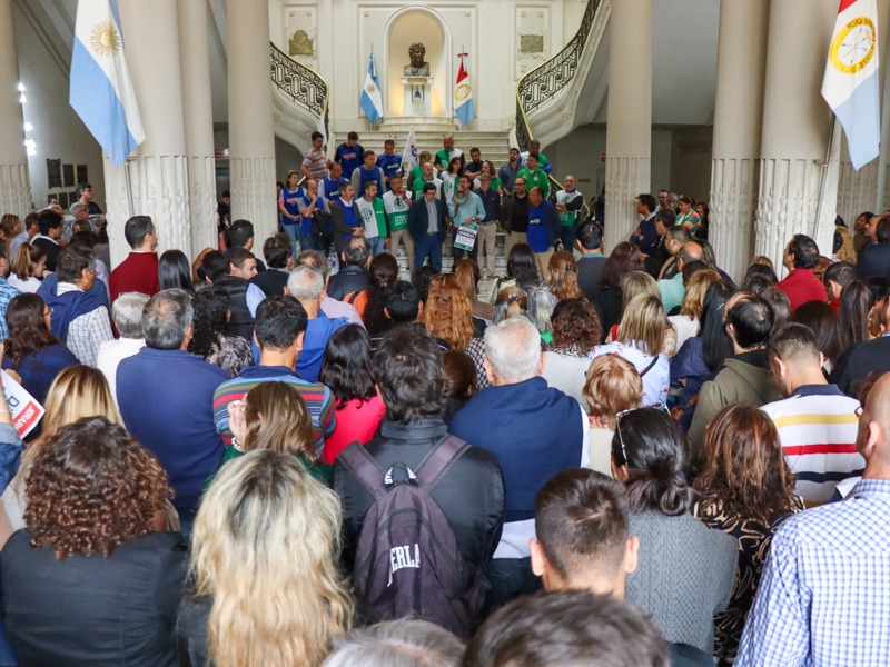 Se realizó una numerosa asamblea en el hall de Casa de Gobierno.