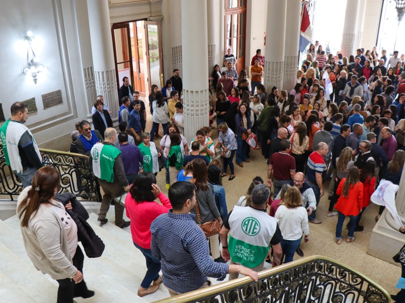 ATE junto a los trabajadores/as de las Direcciones Generales de Administración y Recursos Humanos realizaron una asamblea en el hall de Casa de Gobierno para visibilizar sus reclamos: la jerarquización del suplemento y la convocatoria a Paritarias. También se solicita el pase a planta permante de trabajadores/as que quedaron pendientes.