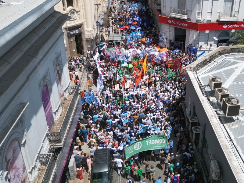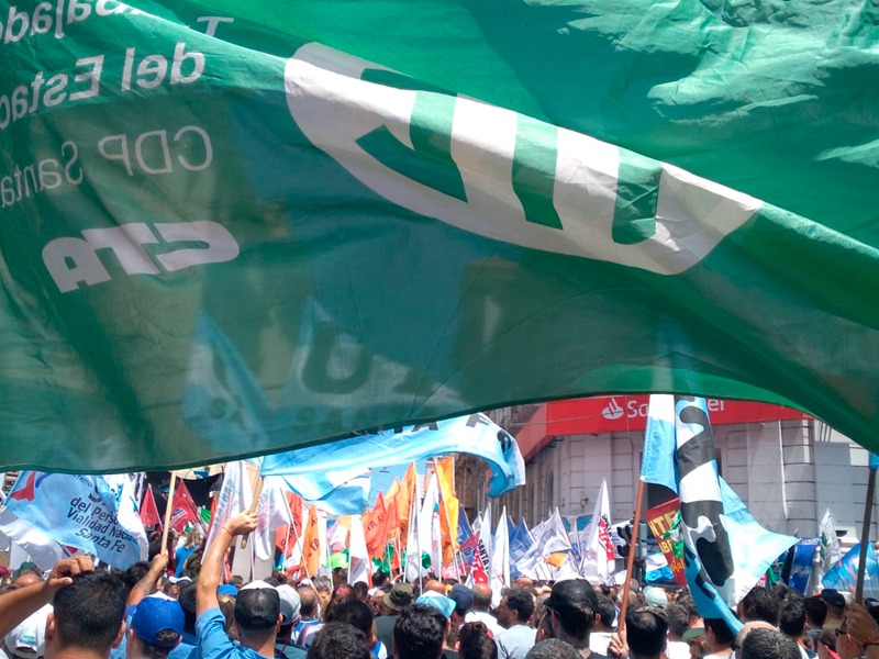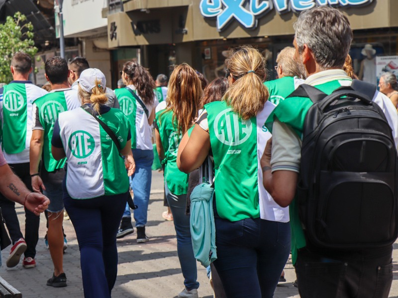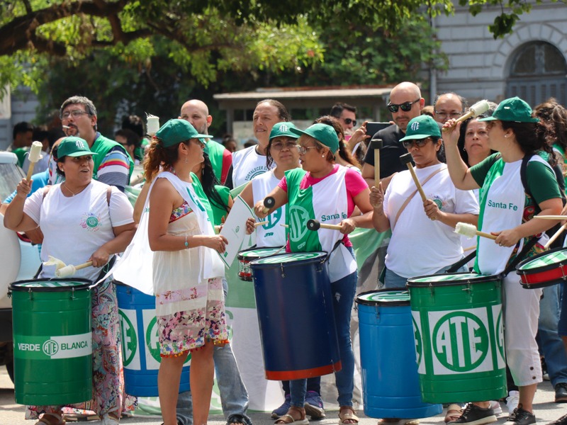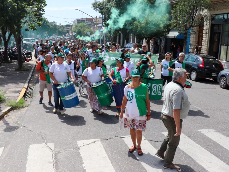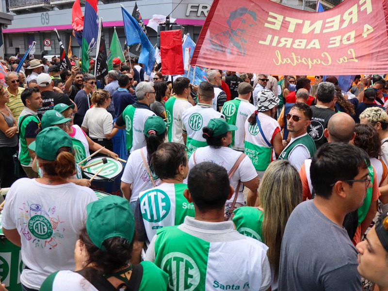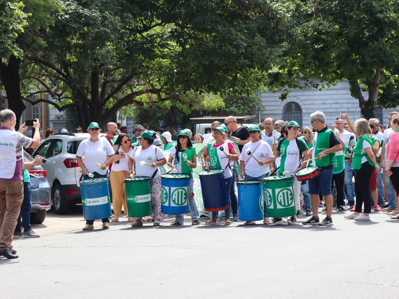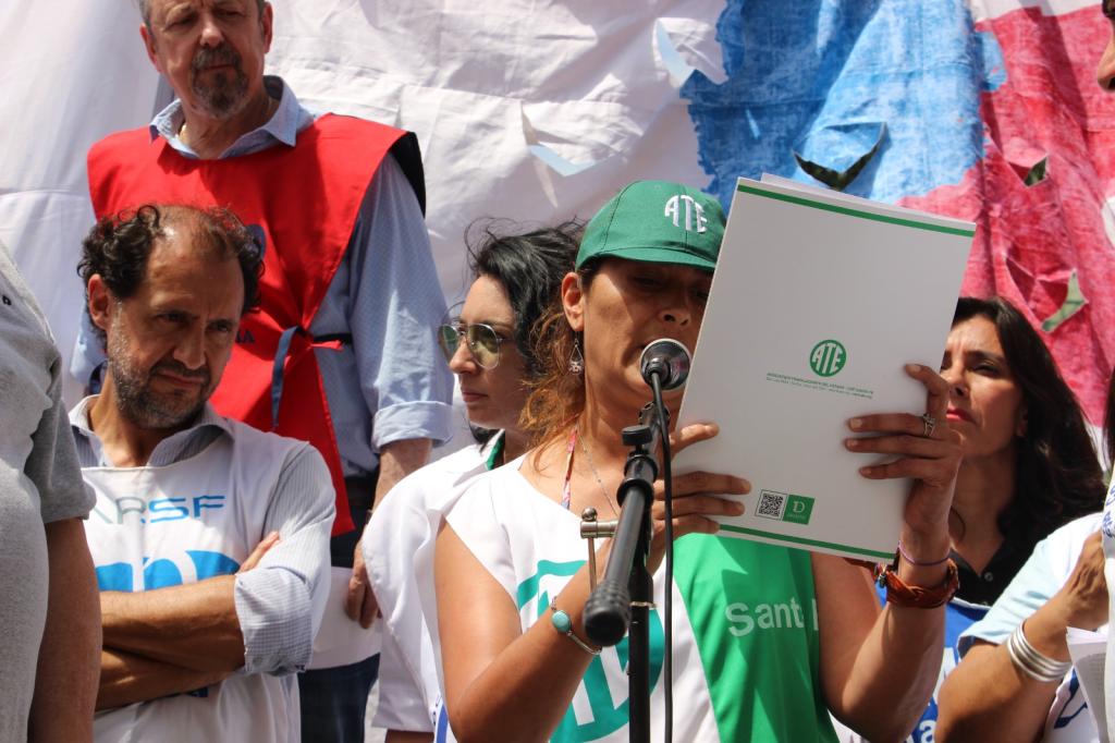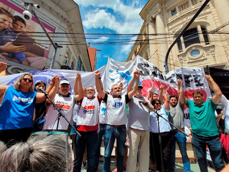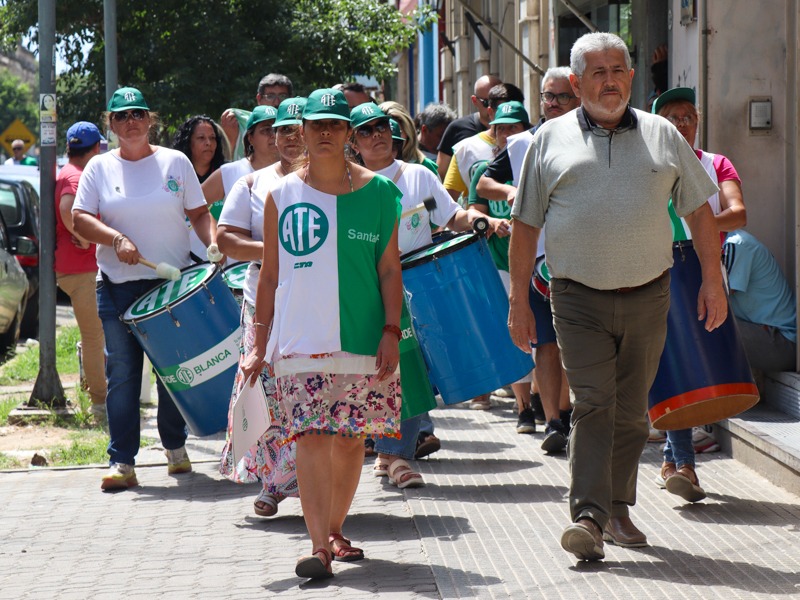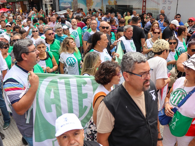 ATE, como integrante de la CTA de los Trabajadores/as Santa Fe, se sumó a las medidas dispuestas junto a la C.G.T. Regional Santa Fe para el miércoles 27 de diciembre a las 11 horas en la Peatonal San Martín y Tucumán. Se realizó una concentración en el Banco Nación.