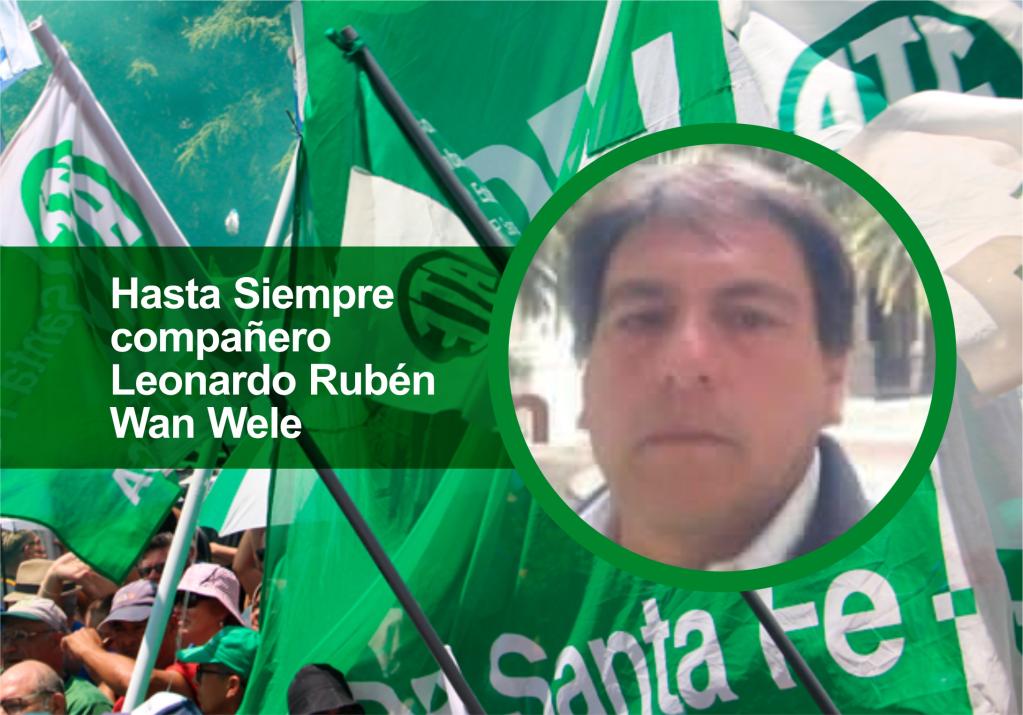 ATE manifiesta su profundo pesar por el fallecimiento de Leonardo Rubén Wan Wele, delegado del SAMCo Villa Ocampo-Las Toscas, reconocido por todos/as por su larga trayectoria de militancia, siempre fiel a sus principios ya la lucha por los que menos tienen.