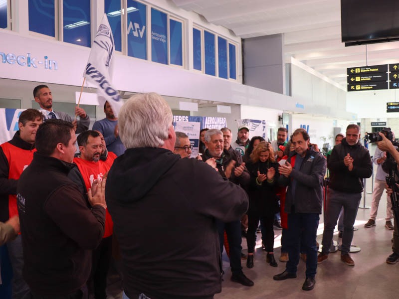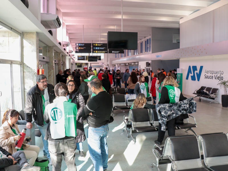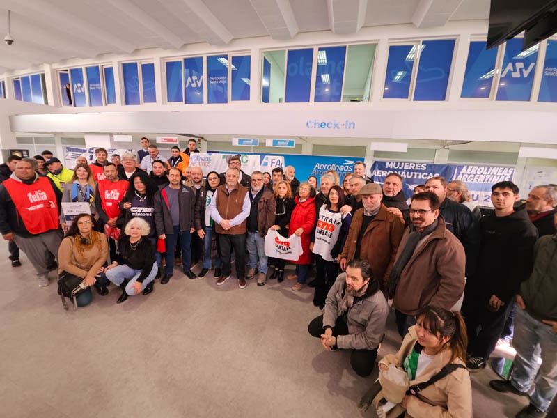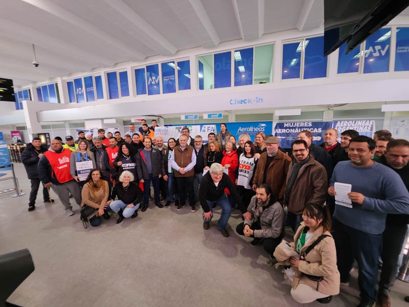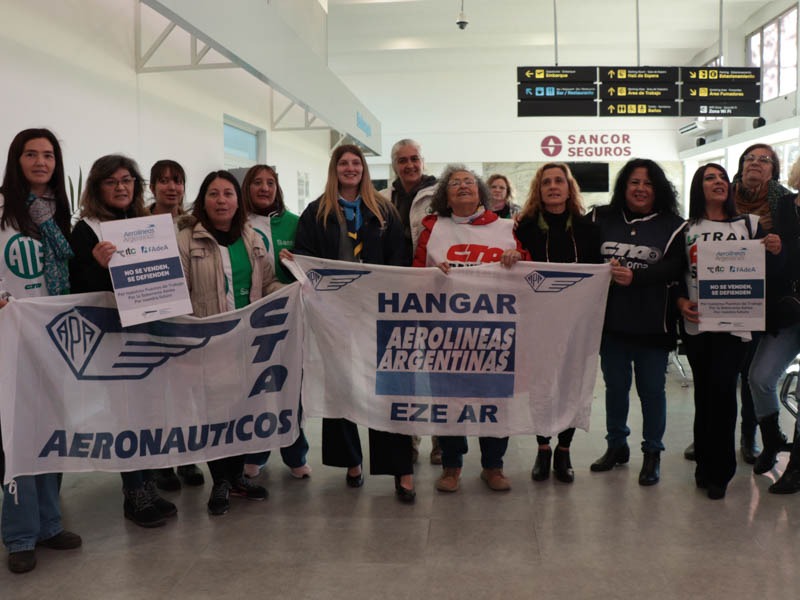 Este martes se realizó una concentración y conferencia en el Aeropuerto de Sauce Viejo, en rechazo a la intención de la privatización de Aerolíneas Argentinas.