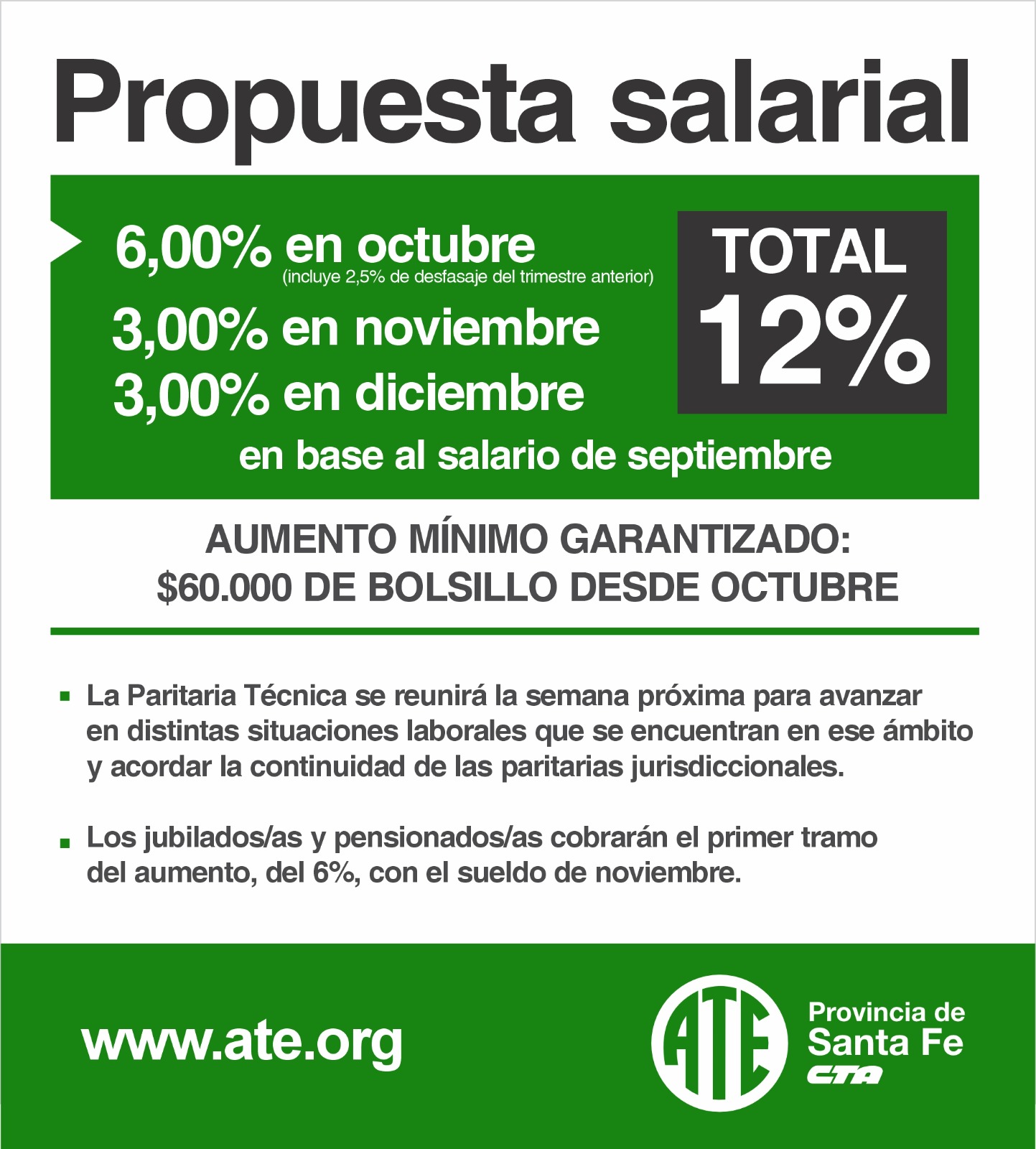 - El Gobierno Provincial oficializó una propuesta para los meses de octubre, noviembre y diciembre del 12% que será distribuidos en:
