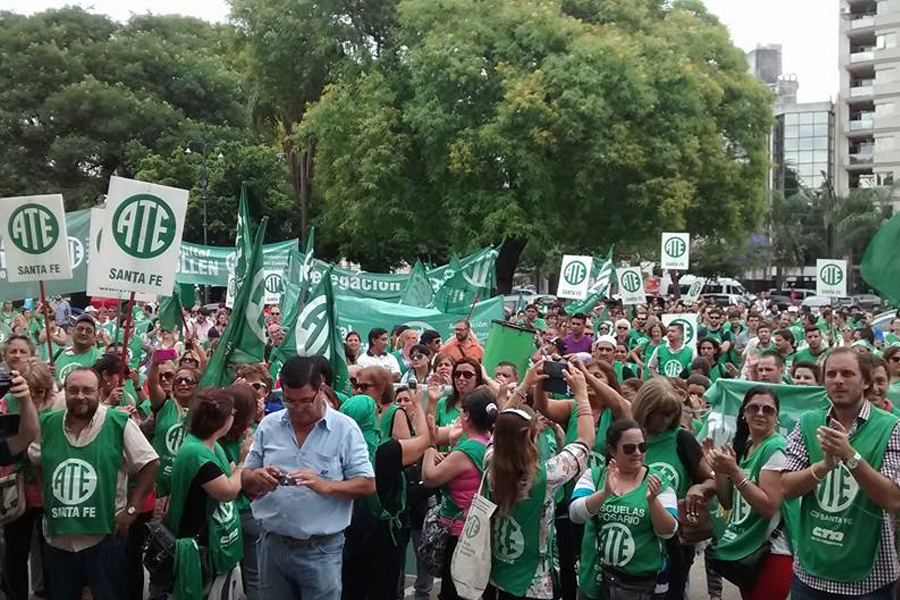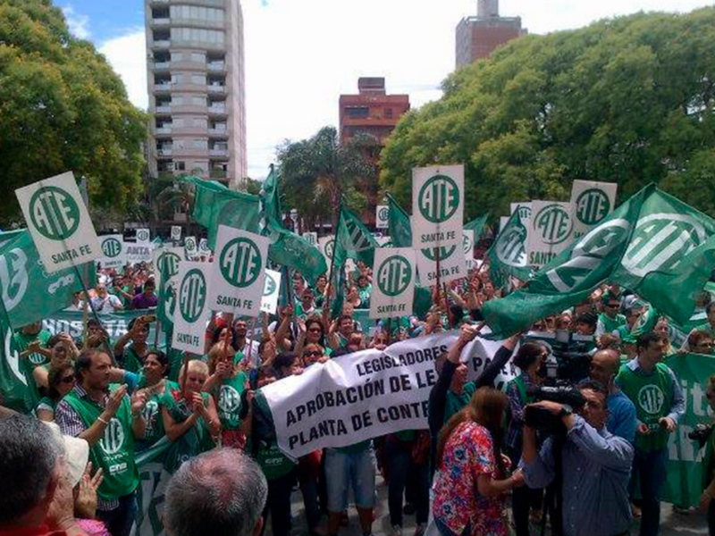 La masiva presencia de compañeros en la explanada de la Legislatura se mantendrá hasta la sesión.