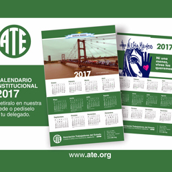 | --- Fin de año 2016 - Agenda 2017 con imágenes de momentos y personalidades importantes de nuestro país. - Almanaque 2017 con dos imágenes con hechos simbólicos que marcan la historia reciente: uno de los símbolos de la Campaña “Ni Una Menos” y la gran Marcha Federal en el Puente Colgante. |