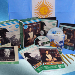 | --- 1º entrega -CD con canciones patrias -DVD Película "Belgrano" -Libro de la película "Belgrano" y la Bandera Argentina. |