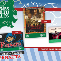 | --- El Eternauta - CD "Sueño Dorado" de Abel Pintos. - Libro El Eternauta creada por el guionista Héctor Germán Oesterheld y el dibujante Francisco Solano López - DVD "La revolución es un sueño eterno", dirigida por Nemesio Juárez |