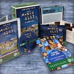 | --- Mundo Alas -CD de Mundo Alas con León Gieco y artistas de Mundo Alas -Dvd Mundo Alas, la película - Cuento con Alas de Patricia Knopf y Silvina Mansilla. |