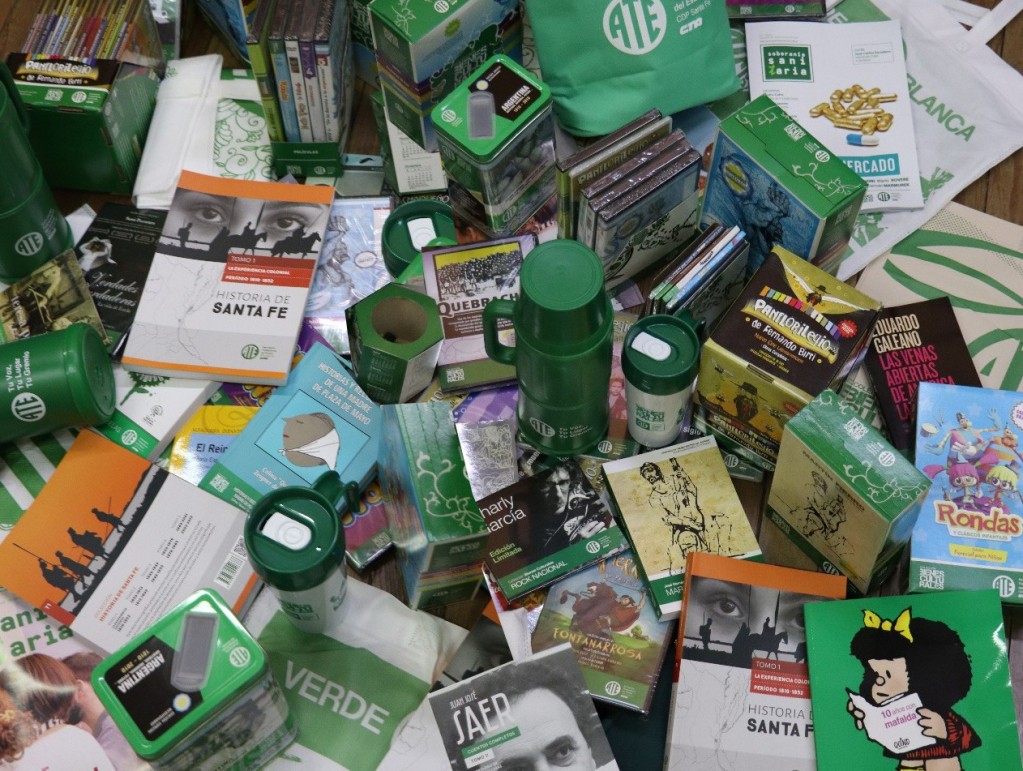 1. CD de Jaime Roos 2. Libro: Clásico de literatura universal: Edgar Allan Poe 3. DVD: Fernando Birri: Panflorilegio. Nuevo Cine Latinoamericano. Obras 1. En total, se editó por primera vez la obra completa del director de cine santafesino Fernando Birri. Un nuevo aporte de ATE a la cultura. |