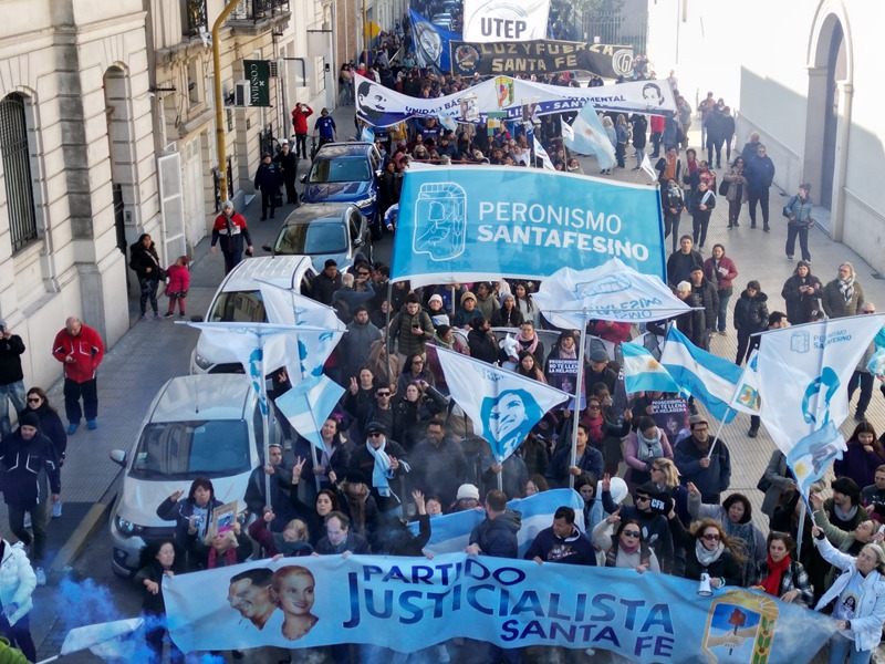 Este miércoles 18 de junio marchamos desde Plaza del Soldado a Plaza de Mayo junto a las Centrales Obreras, el Foro Contra la Impunidad y por la Justicia de Santa Fe, Organizaciones sociales, Partidos políticos y toda la comunidad, en defensa de la Democracia y en repudio a la decisión injusta y arbitraria de condenar y proscribir a Cristina Fernández de Kirchner.