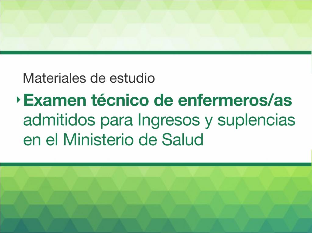 Materiales de estudio para el examen técnico de enfermeros/as admitidos para Ingresos y suplencias en el Ministerio de Salud