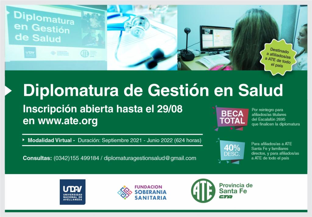 La Diplomatura de Gestión en Salud es fruto de un Acuerdo de Cooperación entre ATE Santa Fe, la Universidad Nacional de Avellaneda y la Fundación Soberanía Sanitaria.