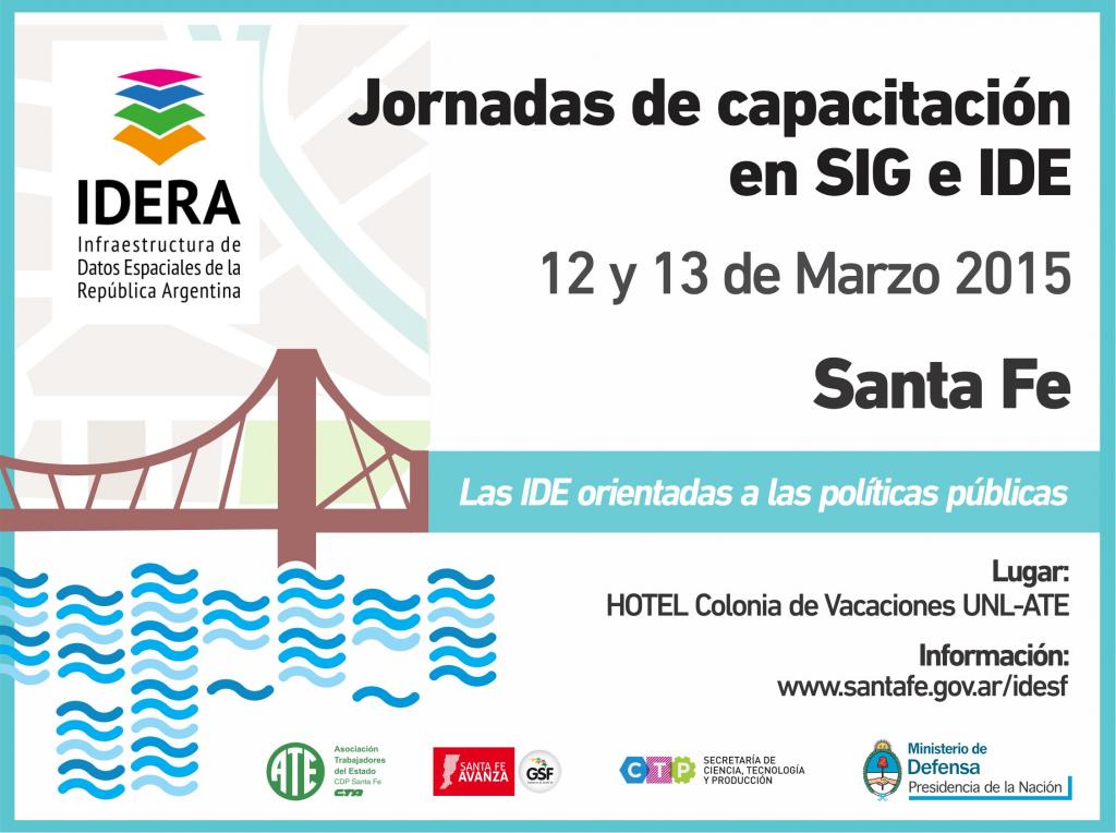 Los días 12 y 13 de Marzo de 2015, en el Hotel Colonia de Vacaciones UNL - ATE, se realizarán las “Jornadas de Capacitación en Sistemas de Información Geográfica (SIG) e Infraestructura de Datos Espaciales (IDE)”.