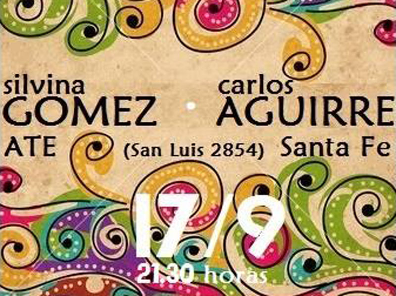 El próximo jueves 17 de septiembre, a las 21.30 en el auditorio de ATE se realizará otro recital del Ciclo dúos. Acompañarán a Carlos Negro Aguirre, la compositora entrerriana radicada en Uruguay, Silvina Gómez. Afiliados a ATE gratis.