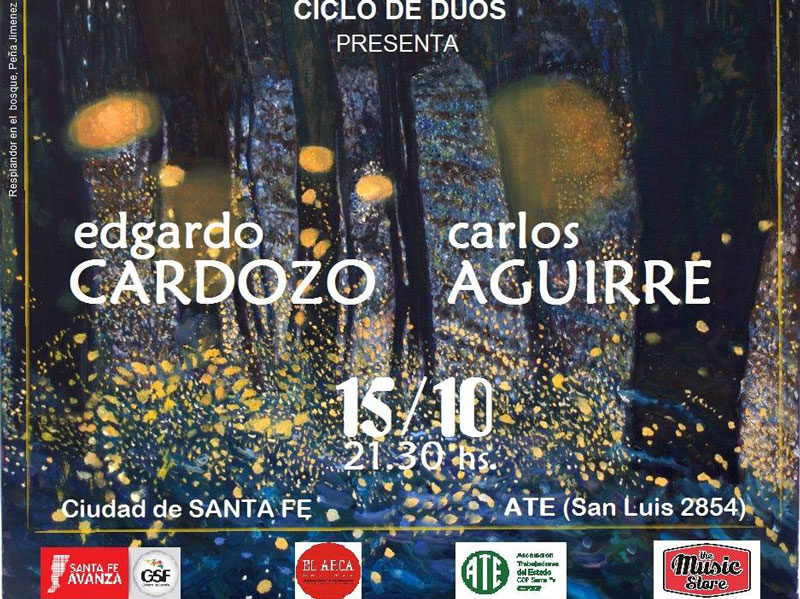 Por primera vez, Carlos Aguirre y Edgardo Cardozo se encontrarán a compartir canciones. Y es un dato para celebrar que esto suceda en el auditorio de ATE (San Luis 2854), ya que ese mágico espacio crea intimidad entre los músicos y, a la vez, conexión y complicidad con el público. Un público, que en caso del Ciclo de Dúos, asume con gusto la condición de asistir y participar de un diálogo musical entre dos artistas, más similar al intercambio despojado que se da en el living de una casa que a los requerimientos de un escenario.