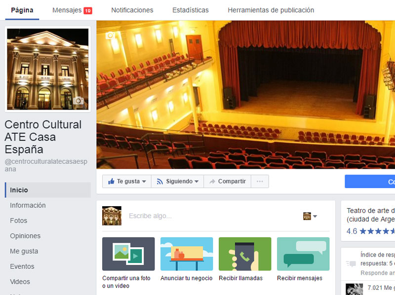 Al cumplirse 10 años de la inauguración de nuestro Centro Cultural ATE Casa España, volvemos a formar parte de la red social más popular Facebook, con nuestra Fan Page.