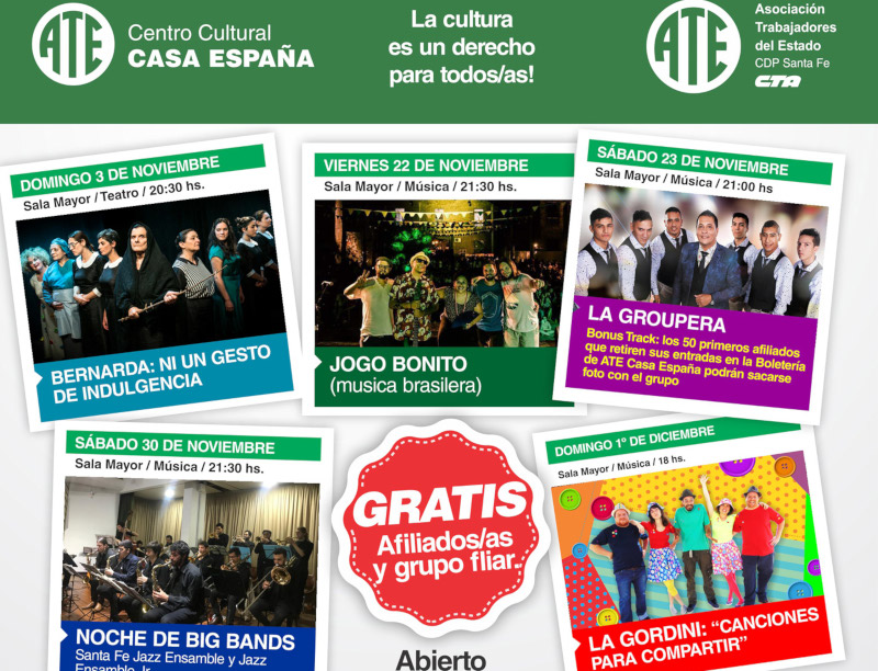 En noviembre continúan los espectáculos gratuitos para afiliados/as y su grupo familiar