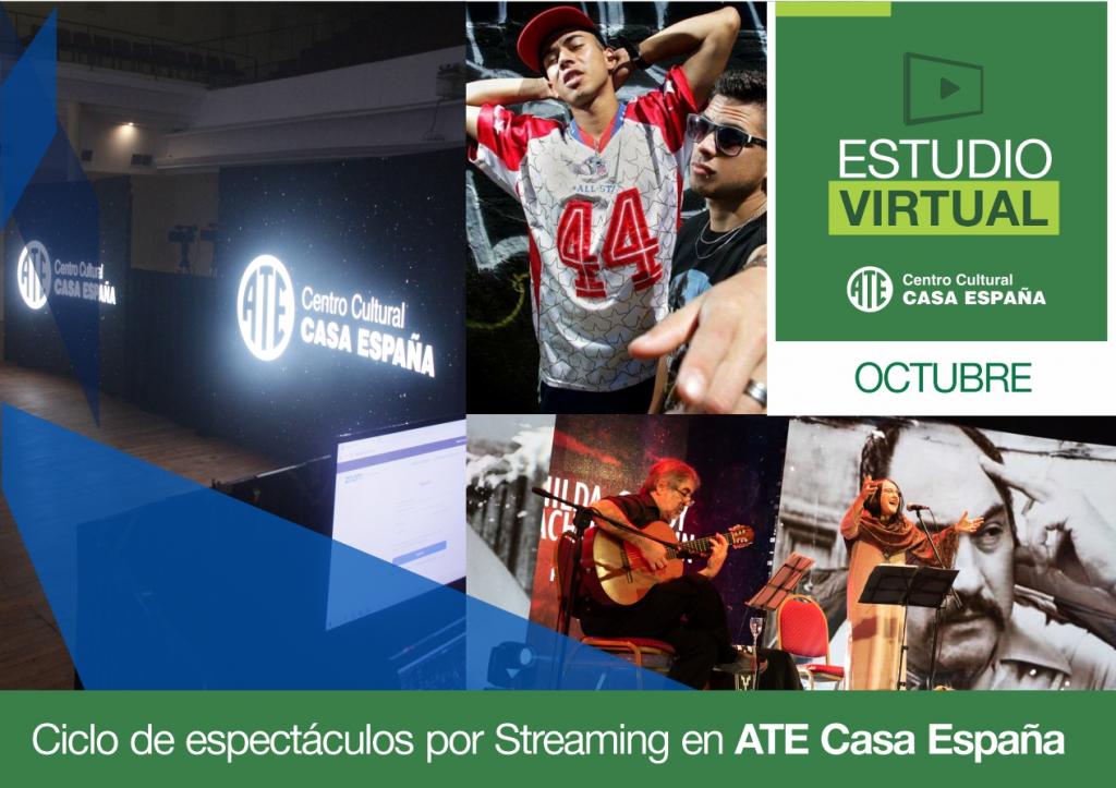 Todos los domingos de noviembre a las 20:30 hs. continuamos con los ciclos artísticos en el Estudio Virtual del Centro Cultural ATE Casa España. Obras teatrales y recitales gratuitos se podrán disfrutar en el Canal de Youtube de ATE.
