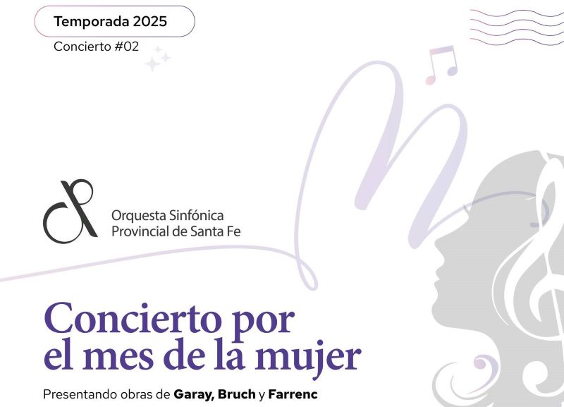 En el Marco de los eventos artísticos organizados por el Ministerio de Cultura de la provincia de Santa Fe por el mes de la mujer, la Orquesta Sinfónica Provincial de Santa Fe dará el segundo concierto de su temporada 2025. Será el viernes 14 de marzo a las 21 hs en ATE Casa España (Rivadavia 2871).