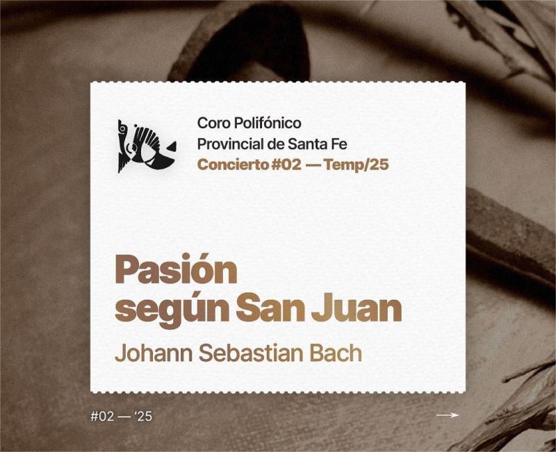 Este jueves 17 de abril a las 19 hs se presentará en la Sala Mayor del Centro Cultural ATE Casa España, el Coro Polifónico Provincial, solistas, el Ensamble Fulmini y músicos invitados en el concierto "Pasión según San Juan" bajo la dirección de Virginia Bono. Entrada libre y gratuita.